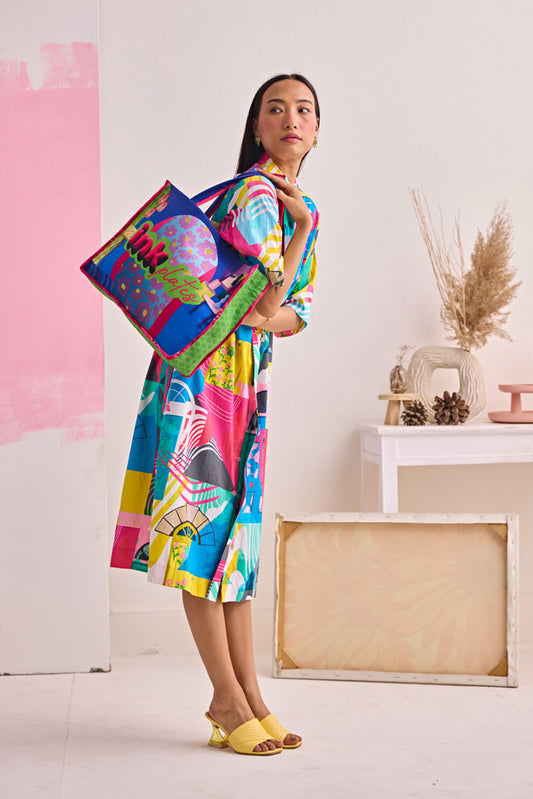TECHNICOLOR HOMESCAPE MIDI DRESS